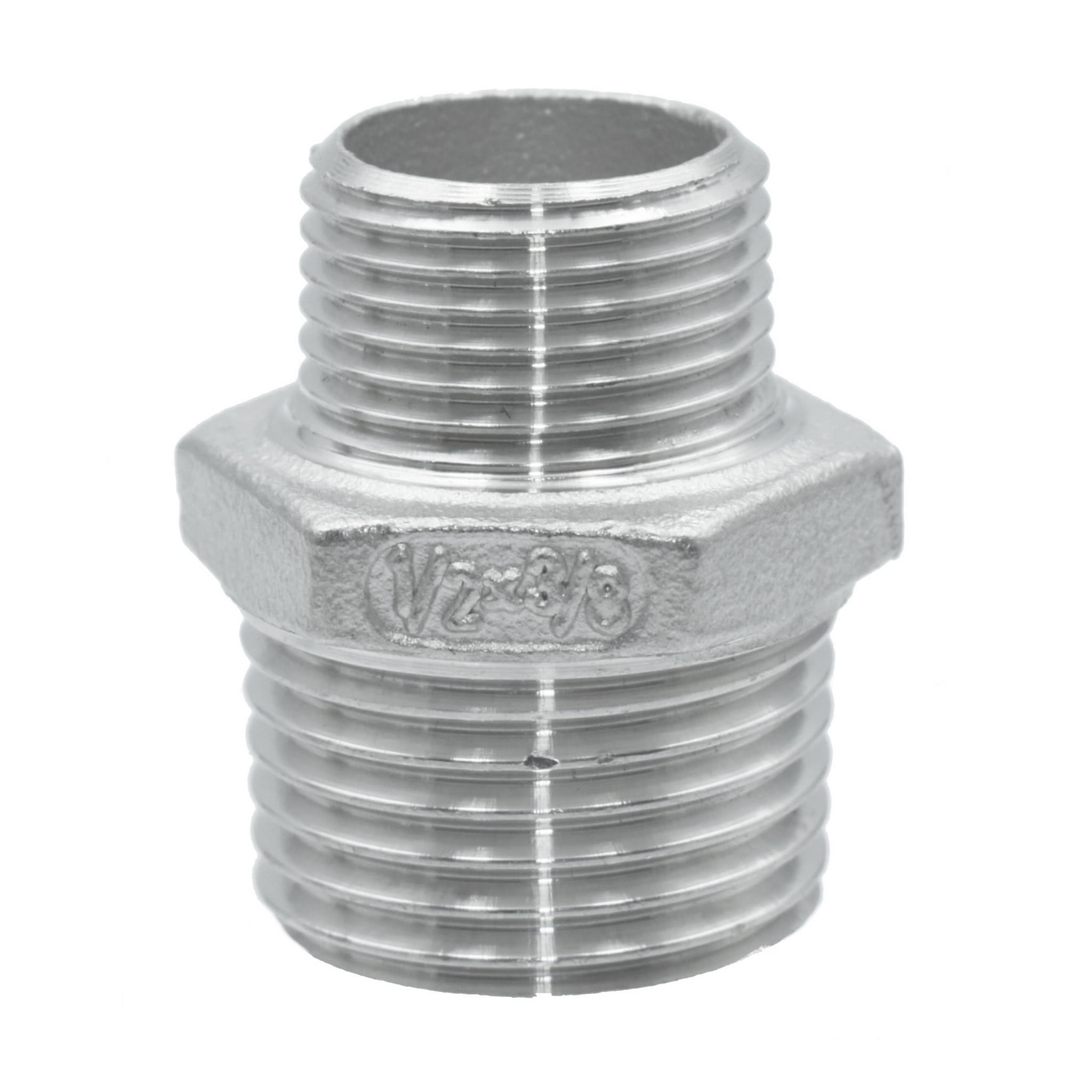 Stainless Steel Reducer Hex Nipple M/M with hex nut 23,0mm. Thread BSP sizes : 1/2" x 1/8" ; Total Lenght: 32,0 mm ; Material : stainless steel 316 Dimension conform to ISO4144 150LBS