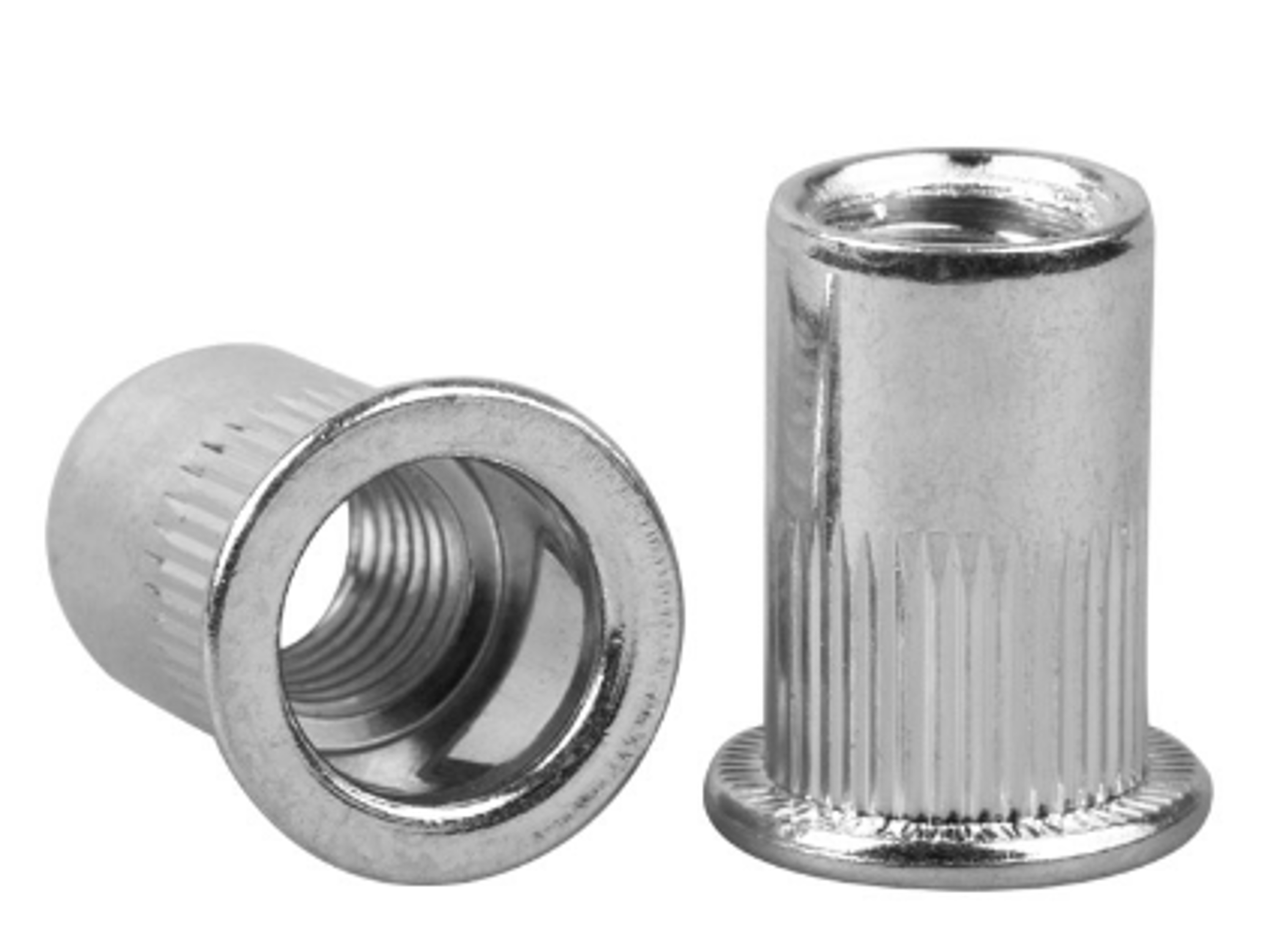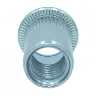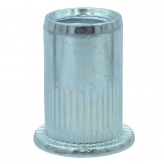 Nitonakrętka stalowa ocynkowana kołnierz płaski radełkowany, Materiał : stal ocynkowana, Rozmiar gwintu nitonakrętki : M4 , Przeznaczona do materiału o grubości ścianki 2,0-3,5 mm, Blind rivet nut Flat Head Knurled Body